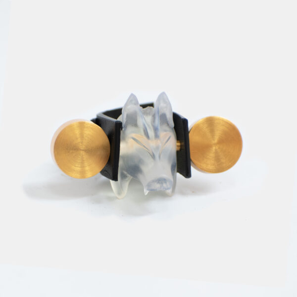 • Material Brass with 24K gold plating and tarnish resistant top coat, Resin, Leather