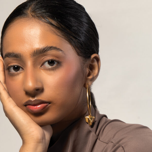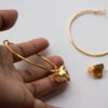 All brass pieces are finished with a 24 Karat Gold flash plating and coated with a top coat for tarnish resistance. However, for lasting finish, avoid contact with liquids and leaving them open to air when not in use. For best care, store jewellery in air tight packaging.