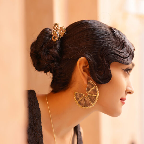 • Description Discover our 'Memento Hoops,' nostalgic treasures that encapsulate vintage stamps, illustrations, pen nibs, and iconic Bollywood icons. Crafted with love, care, and precision, these hoops are a true homage to cherished memories.