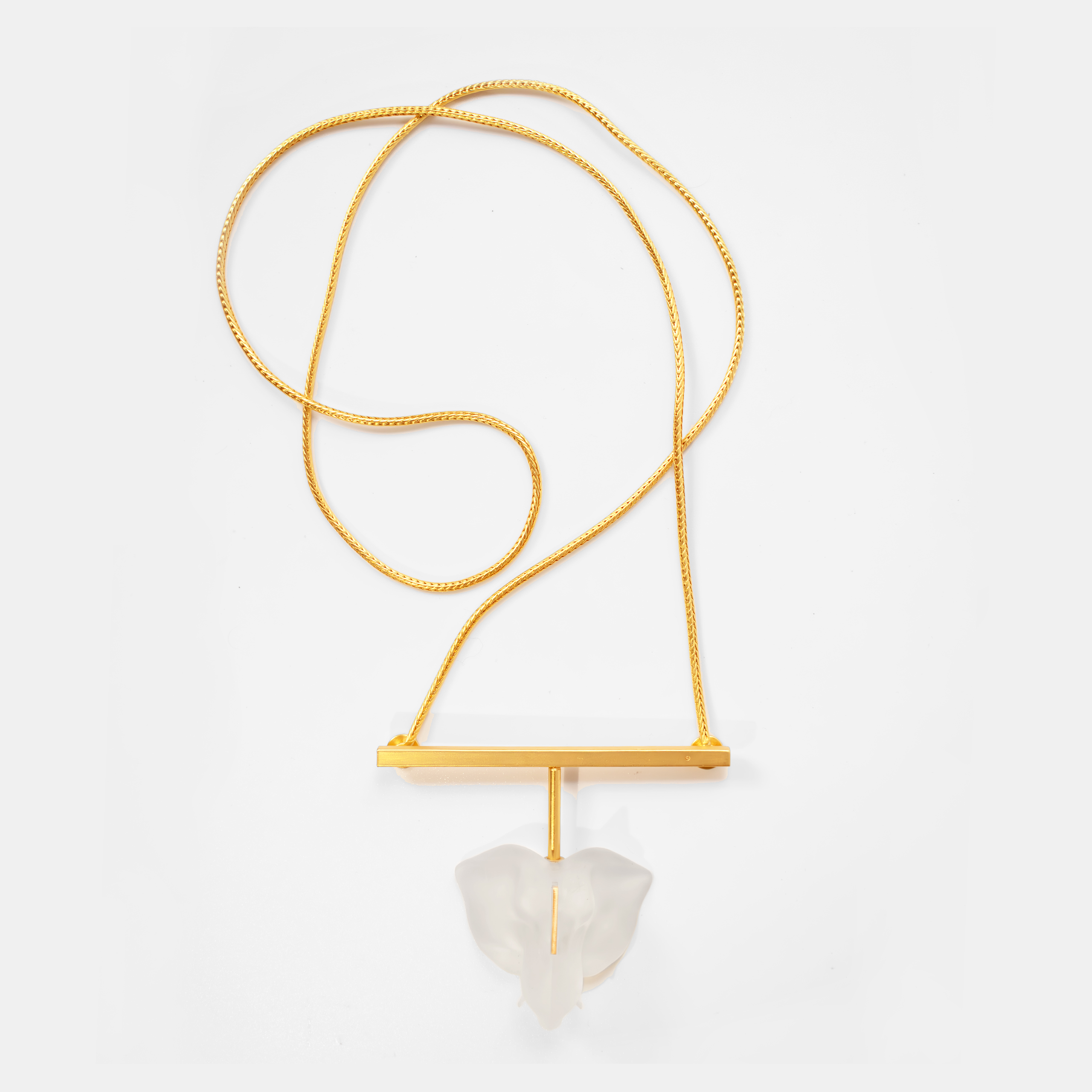 • Description Embrace the timeless elegance of this gold-plated brass elephant necklace. The striking elephant motif, conscientiously crafted, takes center stage on a sleek gold bar pendant. Suspended on a chain, this statement piece effortlessly blends modern aesthetics with nature's grace. A symbol of wisdom and strength, this necklace is a perfect addition to your festive or special occasion attire.
