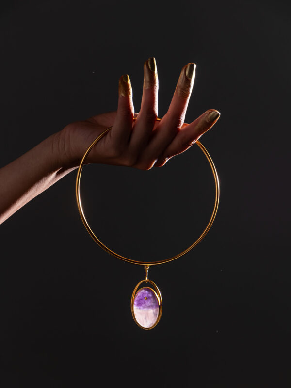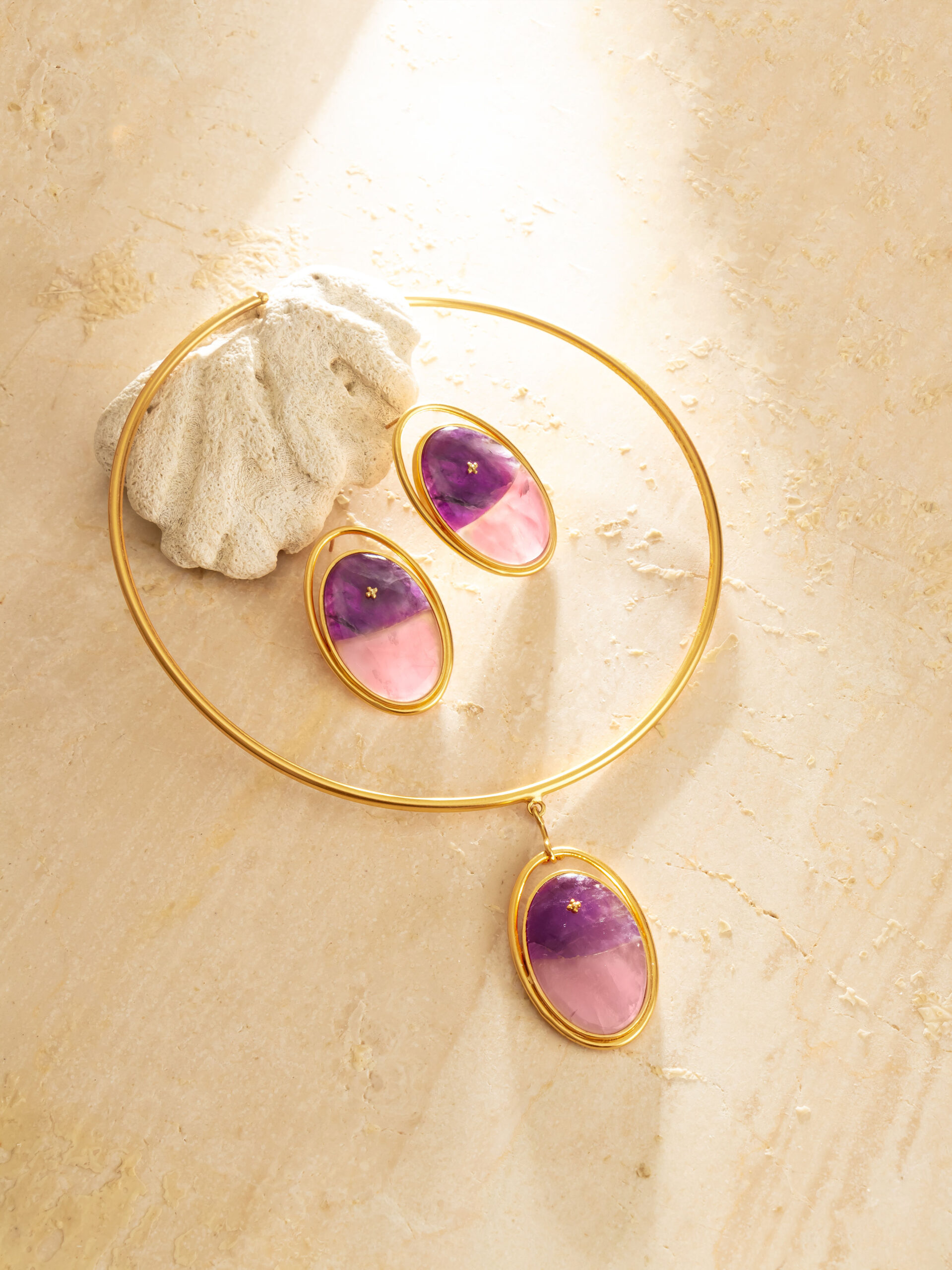 • Material 24K Gold on Brass with Rose and Ameythst agate fused stone