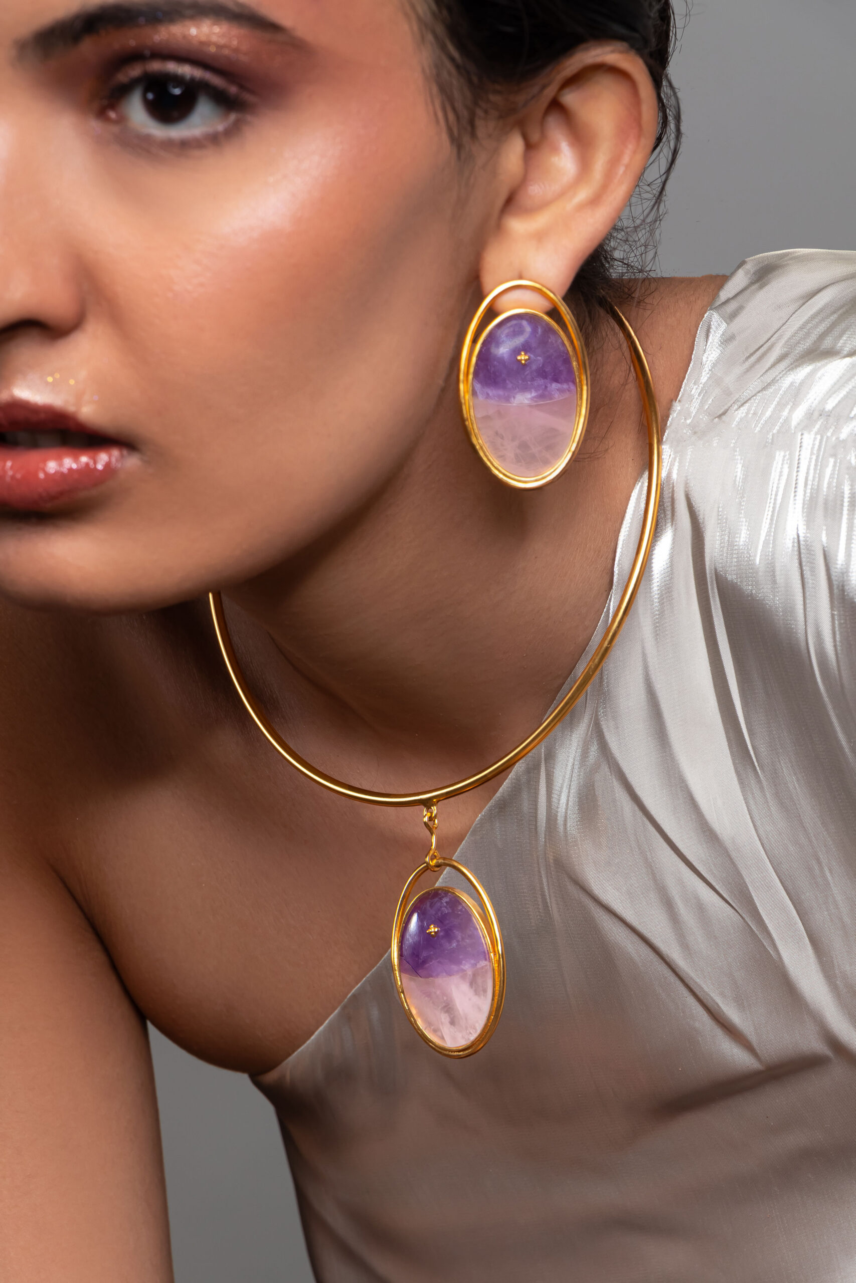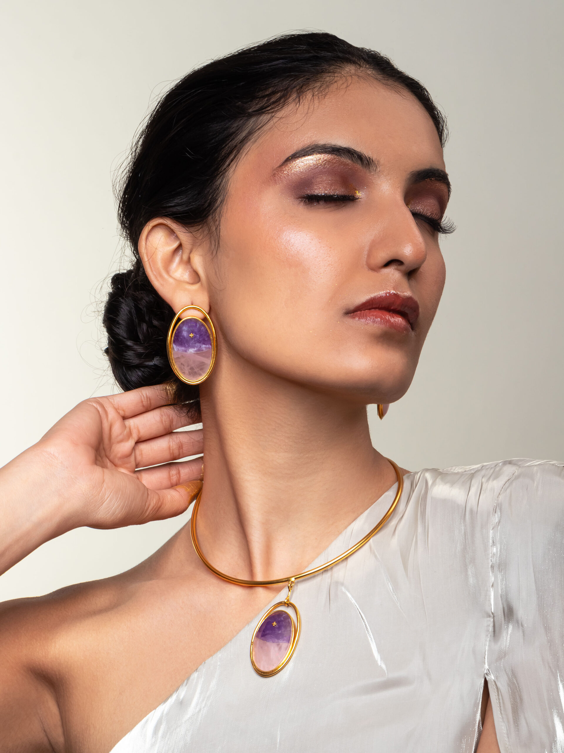 Rose and Ameythst studs